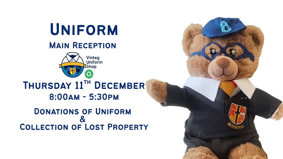 At Brynteg we are very proud to offer a pre-loved, eco-friendly uniform service. Vinteg offers a range of uniform items that are new or almost nearly new. Vinteg is entirely dependent on the kind donations we receive, so we cannot guarantee that the item(s) you request will be in stock.