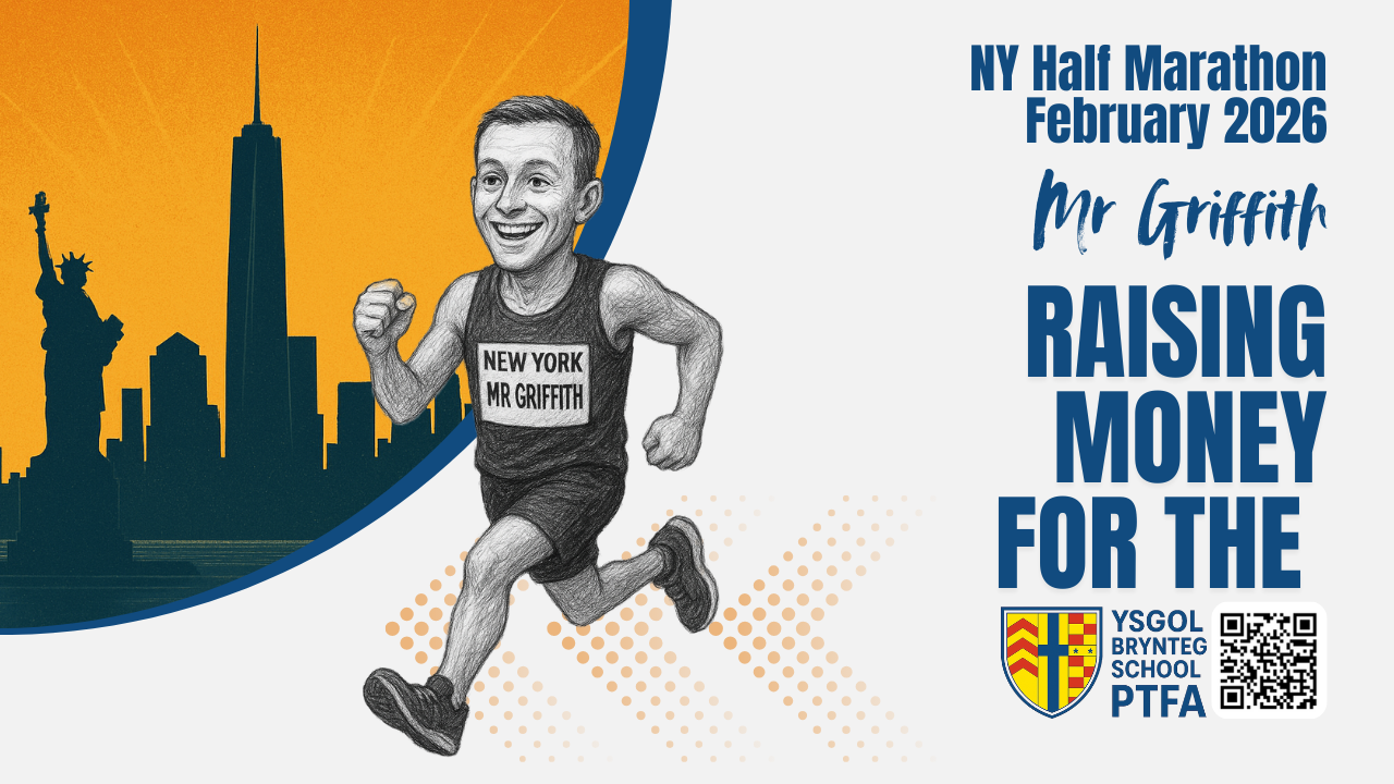Mr I Griffith will be running the New York Half Marathon during the February Half Term in 2026. This is in support of the Brynteg's PTFA. The aim is to help raise funds for new shelters around the school, giving our pupils better outdoor spaces and protection in all weather. Click the image to take you to the GoFundMe fundraising page. If you’re able to donate or share the link with families and friends, it would be greatly appreciated. Every contribution, big or small, helps us move closer to improving our school environment for the pupils. Thank you so much for your support, it truly is for a great cause. |