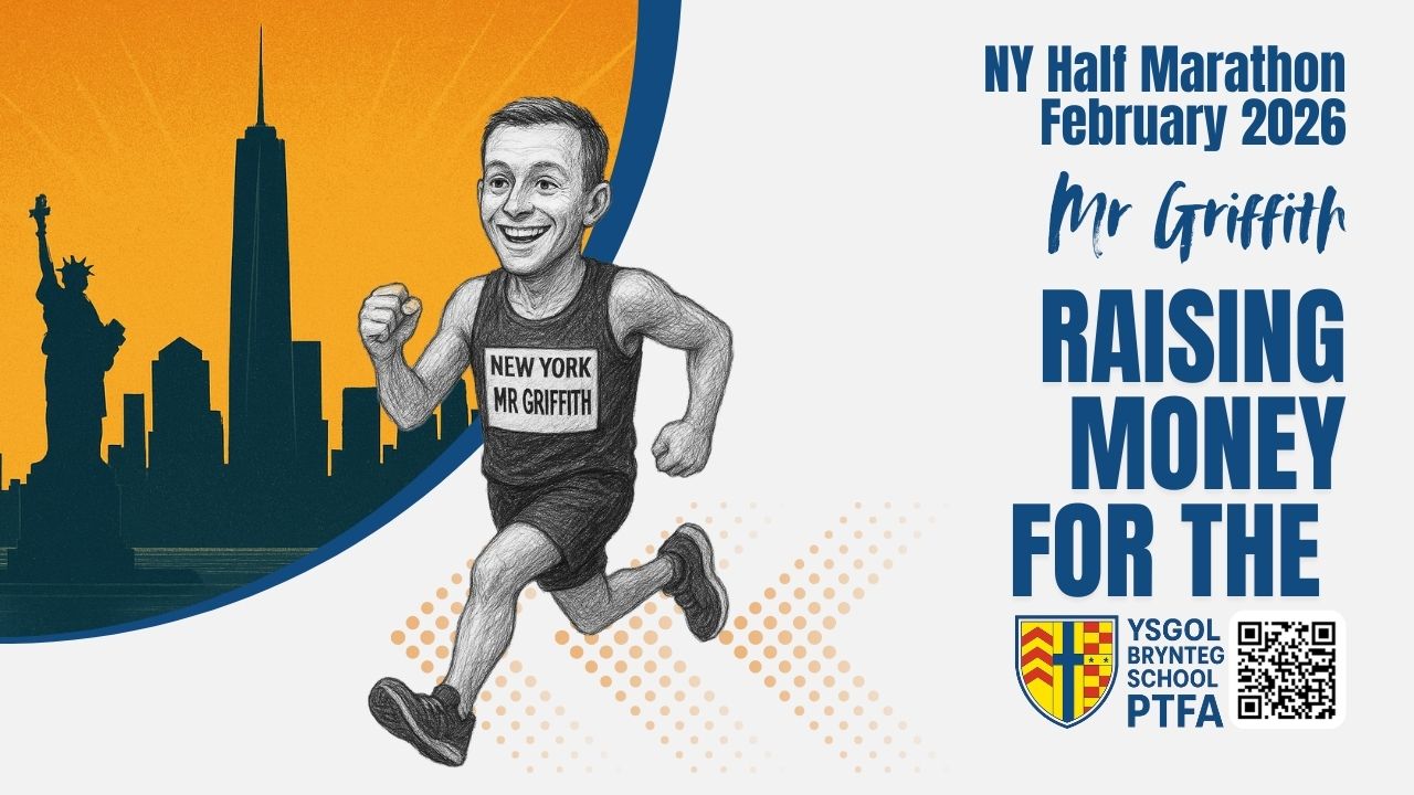Mr I Griffith will be running the New York Half Marathon during the February Half Term in 2026. This is in support of the Brynteg's PTFA. The aim is to help raise funds for new shelters around the school, giving our pupils better outdoor spaces and protection in all weather.